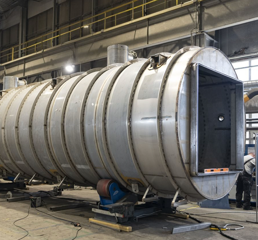 We fabricate using carbon steels (A36, A516 Gr.70), stainless steels (304/304L, 316/316L), duplex steels, nickel alloys (Inconel, Monel), aluminum, and other specialty metals. All materials undergo rigorous certification verification and testing before use.